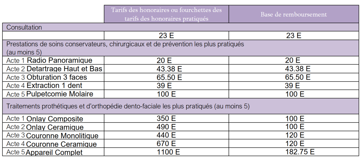 Pour certains traitements, votre chirurgien-dentiste pratique des honoraires libres qui peuvent être supérieurs aux tarifs de remboursement par l’assurance maladie, le cas échéant, dans les limites fixés par la Convention nationale des chirurgiens-dentistes. Leur montant doit être déterminé avec tact et mesure. Ils sont fixés conformément aux éléments d’appréciation prévus à l’article R. 4127-240 du Code de la santé publique, à savoir, en plus de l'importance et de la difficulté des soins, la situation matérielle du patient, la notoriété du praticien et les circonstances particulières.